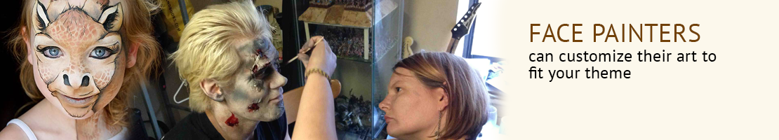 Our Face painters can customize their art to fit your theme. Available for Parties and special events.